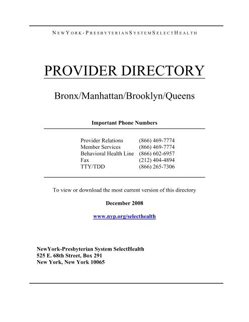 Provider Directory Cover New York Presbyterian Hospital